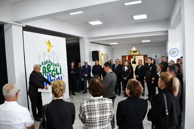 Karadeniz Bölge ve Garnizon Komutanı Tuğamiral Niyazi Uğur, Kdz. Ereğli Belediye Başkanı Halil Posbıyık ve eşi Kadın Gücü Kooperatifi Başkanı Neriman Posbıyık, CHP İlçe Başkanı Ali Kocamanoğlu ve yönetimi, İyi Parti İlçe Başkanı Yasemin Erdoğan ve yönetimi, belediye başkan yardımcıları, meclis üyeleri ve STK temsilcilerinin katıldığı açılışta Tuncay Çetinkaya ve Mahmut Şevket Kocaman’ın eserleri sanatseverlerle buluştu.