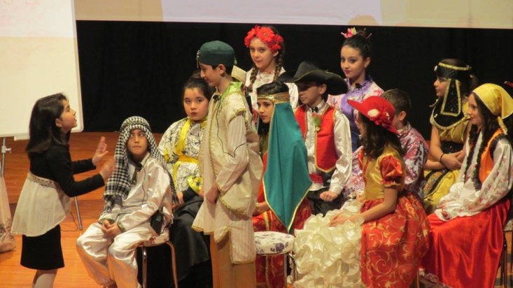 öğrencilerin, eğitimini aldıkları İngilizce dilinde şarkı söyleyip drama