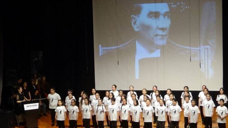 fotoğrafının olduğu tişörtlerden giyen öğrenciler "Mustafa Kemal Song" isimli