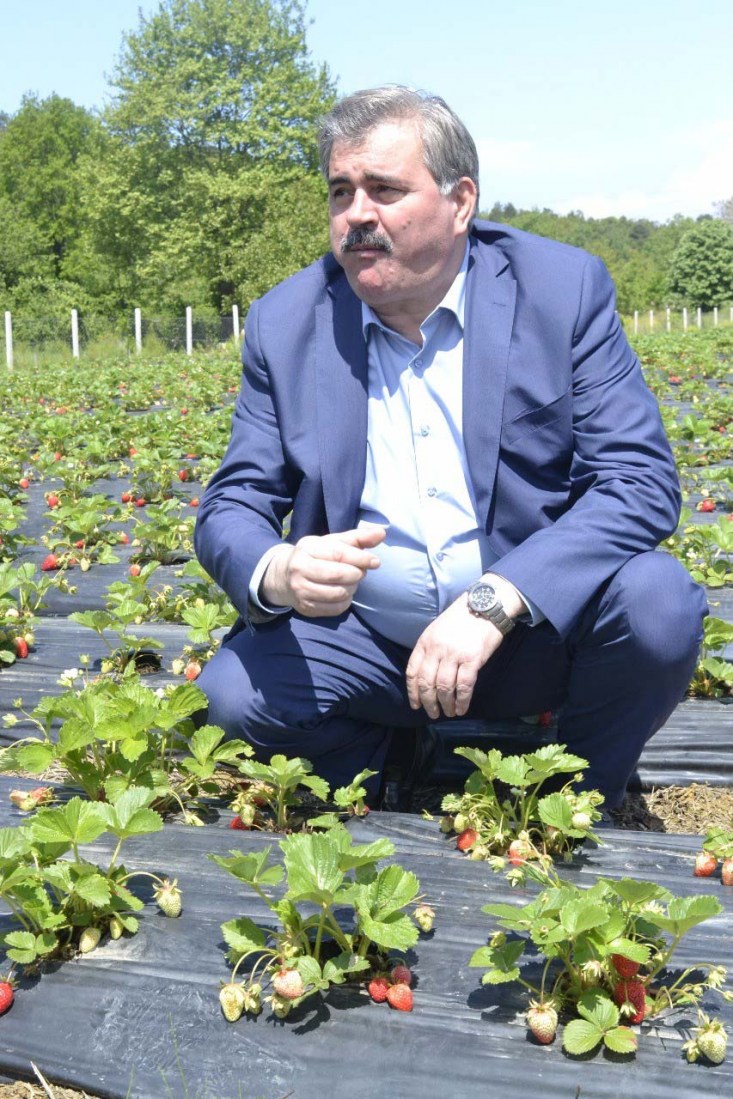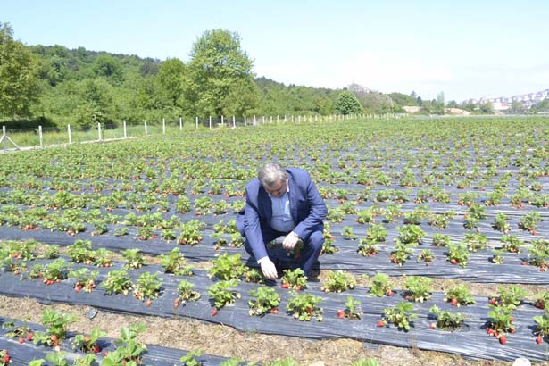 yaptığı Çilek Tarlasını ziyaretinde , tarıma uygun olmayan arazisini geçen yıl