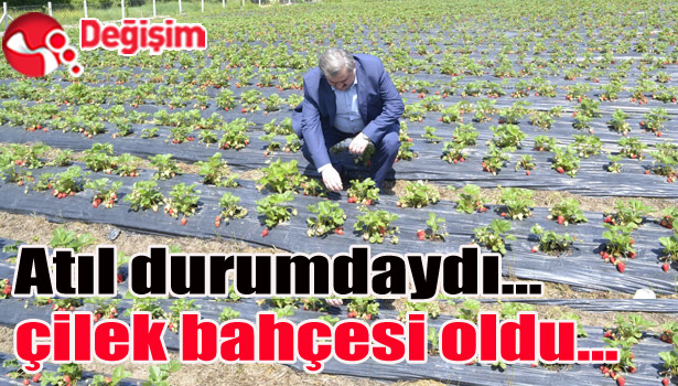 çilek tarlasına dönüştürdüğünü belirterek, atıl durumdaki araziyi