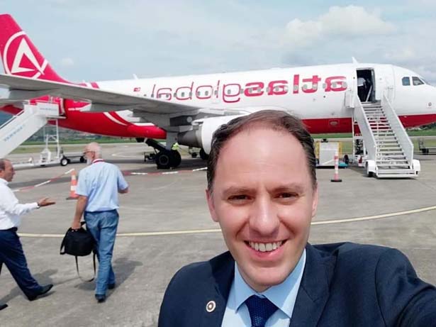 "Doğum günümde, Atlasglobal Havayollarının Zonguldak Havalimanı'mıza yaptığı ilk uçuşunda, değerli gazeteci yazar İsmail Saymaz ve Atlasglobal Havayolları Avrupa Müdürü Ayşe Mısırlı Mirza'yla birlikteyiz. Hep birlikte başardık, hayırlı olsun Emeği geçen herkese teşekkür ederim."