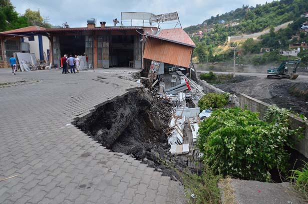 Zonguldak'ın Kozlu ilçesinde DSİ ekipleri dere ıslah çalışması yapmak istedi. İlçedeki sanayi sitesinin kenarında bulunan derede ıslah çalışmaları sürerken, sanayi sitesinin istinat duvarıyla birlikte bir mermer atölyesinde çökme meydana geldi. Olayın ardından Kozlu Belediyesi zabıta ekipleri bölgede geniş güvenlik önlemi aldı. Faciadan dönülen olayda mermer atölyesindeki eşyalarla birlikte sanayi sitesindeki yol da göçtü. Mermer atölyesinin sahibi ise atölyenin kalan bölümündeki mermerler ve cihazların tahliyesine başladı.