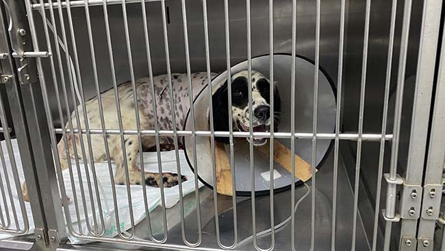 Veteriner hekim Önder Alkan, “Şimdi bize gelen vakada av köpeği köyde silahla yaralanmış. Ayağının bir tanesi yukarı taraftan yani kürek kemiğinin altından parçalanmış vaziyette. Bütün sinirler, damarlar, her şey kopmuş. Ampute etmek zorunda kaldık. Çünkü bacağı kullanma şansı bundan sonra yoktu. Sinirler, damarlar, her şey kemik falan parça parça olmuş. Bundan sonraki hayatına üç bacaklı olarak devam edecek. Ameliyatımız iyi geçti. Şu an yemeye içmeye başladı, tedavisi devam ediyor. Serum tedavisi, antibiyotik tedavisi devam ediyor ve iyi olacağını düşünüyoruz. Biz bir kurşun çıkardık. Kurşunun girdiği yer belli, çıktığı yer belli” dedi.