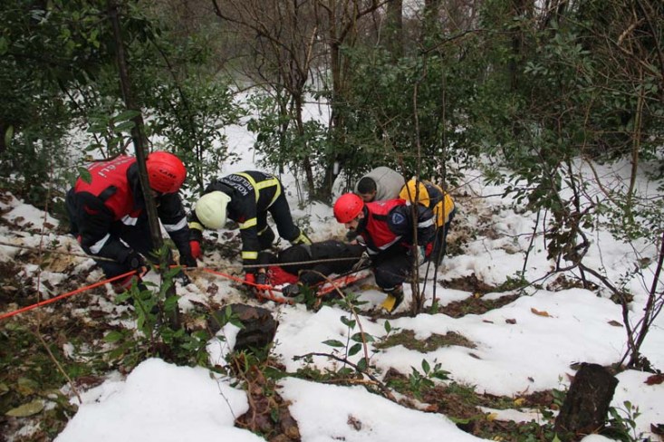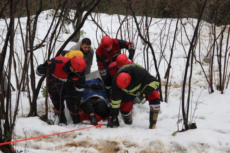zonguldak'ın Ereğli ilçesinde avlanmak için dağlık alana çıkan bir kişi karda dengesini kaybederek dere yatağına yuvarlandı. Telefonla yardım istediği yakınları avcıyı kurtaramayacaklarını anlayınca itfaiyeden yardım istedi. Yaralı avcı yoldan 500 metre mesafeden iplerle güçlükle kurtarıldı.
