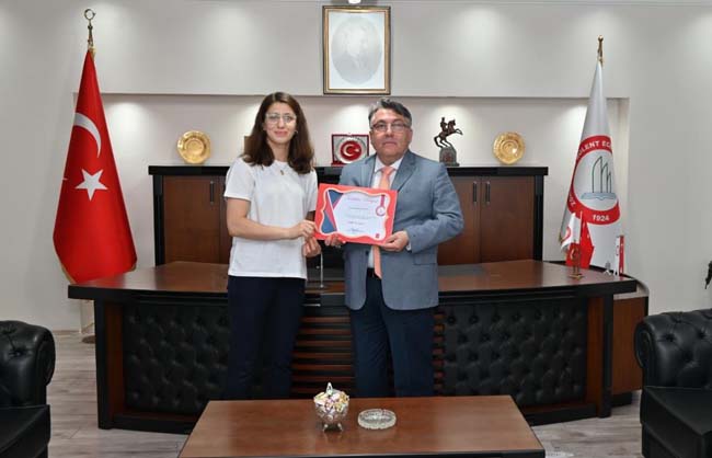 Rektör Prof. Dr. İsmail Hakkı Özölçer, BEUN öğrencisi ve Avrupa Şampiyonu Sudenur Basancı’yı makamında kabul ederek teşekkür belgesi takdiminde bulundu.