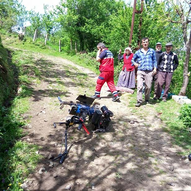 yerine jandarma ekipleri de geldi. Yaralı, bıçakların tarım aracından sökülmesi