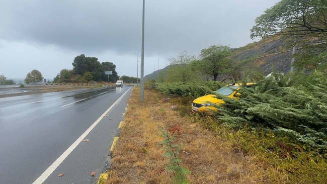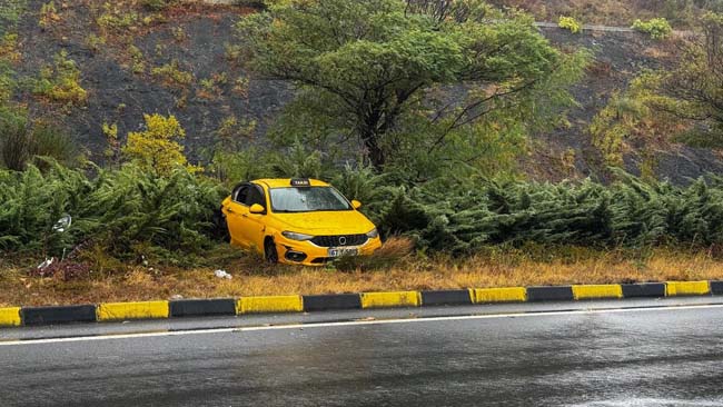 Zonguldak'ın Alaplı Plajlar mevkiinde direksiyon hakimiyetini kaybeden ticari taksi sürücüsü, orta refüjde bulunan aydınlatma direğine çarptı.