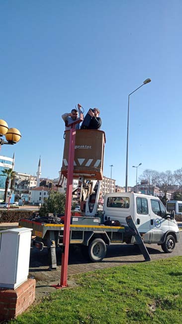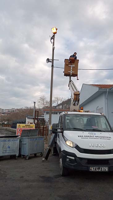 Kdz. Ereğli Belediyesi Destek Hizmetleri Müdürlüğü, kentte zarar gören aydınlatmaları tamir ediyor.