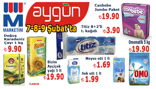 Aygün Market, 7-8-9 Şubat tarihleri arasında indirimli ürünleriyle Ereğli halkını alışverişe davet ediyor.