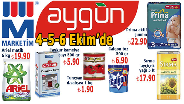 Aygün Market 4- 5- 6 Ekim tarihleri arasında indirimli ürünleriyle Ereğli halkını alışverişe davet ediyor.
