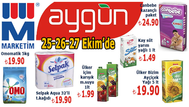Aygün Market, 25- 26- 27 Ekim tarihleri arasında indirimli ürünleriyle Ereğli halkını alışverişe davet ediyor.