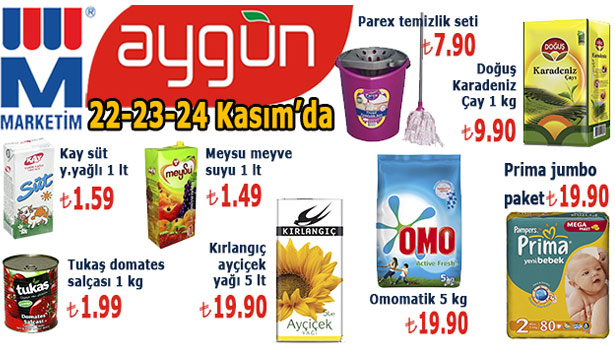 Aygün Market, 22-23-24 Kasım tarihleri arasında indirimli ürünleriyle Ereğli halkını alışverişe davet ediyor.