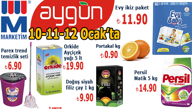 Aygün Market, 10-11-12 Ocak tarihleri arasında indirimli ürünleriyle Ereğli halkını alışverişe davet ediyor.