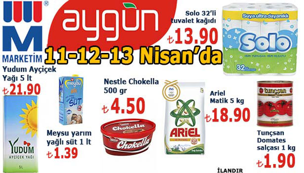 Aygün Market, 11- 12- 13 Nisan tarihleri arasında indirimli ürünleriyle Ereğli halkını alışverişe davet ediyor.