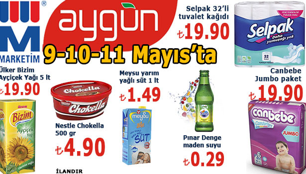 Aygün Market, 09- 10- 11 Mayıs tarihleri arasında indirimli ürünleriyle Ereğli halkını alışverişe davet ediyor.