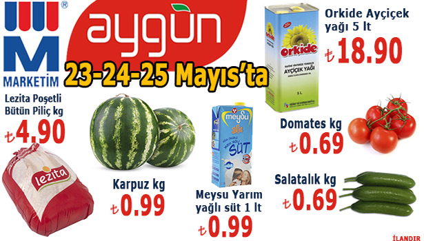 Aygün Market, 23-24-25 Mayıs tarihleri arasında indirimli ürünleriyle Ereğli halkını alışverişe davet ediyor.