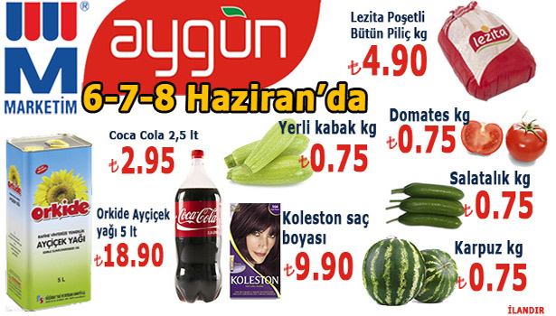 Aygün Market, 6-7-8 Haziran tarihleri arasında indirimli ürünleriyle Ereğli halkını alışverişe davet ediyor.