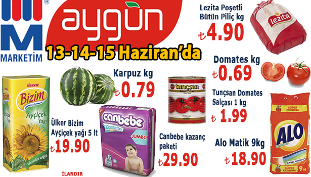 Aygün Market, 13- 14- 15 Haziran tarihleri arasında indirimli ürünleriyle Ereğli halkını alışverişe davet ediyor.