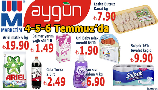 Aygün Market, 04- 05- 06 Temmuz tarihleri arasında indirimli ürünleriyle Ereğli halkını alışverişe davet ediyor.