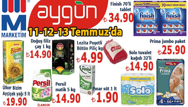 Aygün Market, 11-12-13 Temmuz tarihleri arasında indirimli ürünleriyle Ereğli halkını alışverişe davet ediyor.