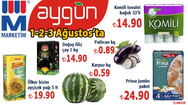 Aygün Market, 01- 02- 03 Ağustos tarihleri arasında indirimli ürünleriyle Ereğli halkını alışverişe davet ediyor.