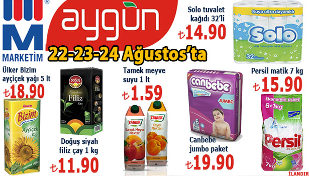Aygün Market, 22- 23- 24 Ağustos tarihleri arasında indirimli ürünleriyle Ereğli halkını alışverişe davet ediyor.