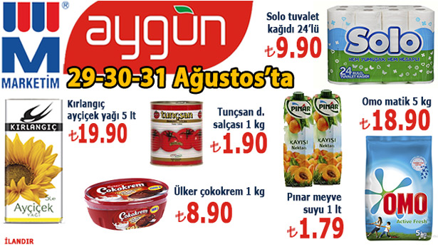 Aygün Market, 29- 30- 31 Ağustos tarihleri arasında indirimli ürünleriyle Ereğli halkını alışverişe davet ediyor.