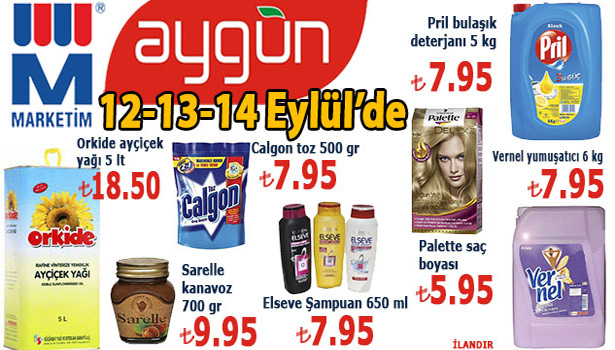 Aygün Market, 12-13-14 EYLÜL tarihleri arasında indirimli ürünleriyle Ereğli halkını alışverişe davet ediyor.