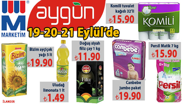 Aygün Market, 19- 20- 21 EYLÜL tarihleri arasında indirimli ürünleriyle Ereğli halkını alışverişe davet ediyor.