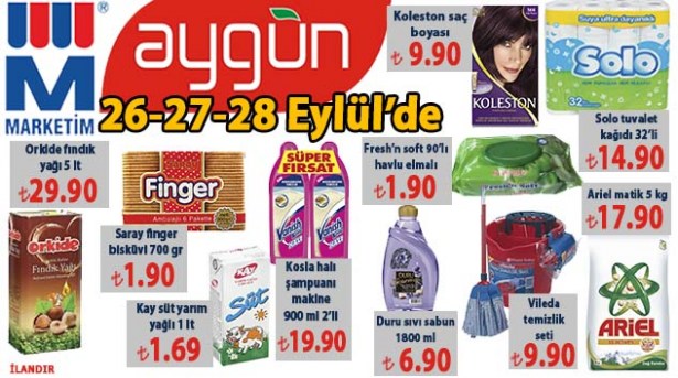 Aygün Market, 26 - 27- 28 EYLÜL tarihleri arasında indirimli ürünleriyle Ereğli halkını alışverişe davet ediyor.
