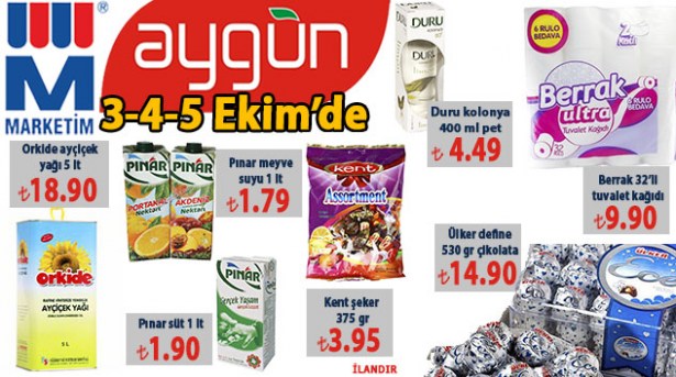 Aygün Market, 3-4-5 EKİM tarihleri arasında indirimli ürünleriyle Ereğli halkını alışverişe davet ediyor.