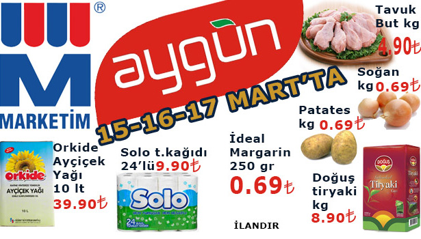 Aygün Maket 15- 16- 17 Mart tarihleri arasında indirimli ürünleriyle Ereğli halkını alışverişe davet ediyor.