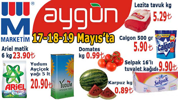 Aygün Market 17- 18- 19 Mayıs tarihleri arasında indirimli ürünleriyle Ereğli halkını alışverişe davet ediyor.