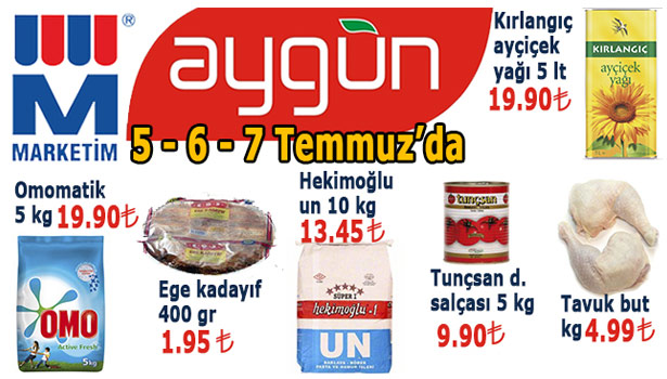 Aygün Market 05- 06- 07 Temmuz tarihleri arasında indirimli ürünleriyle Ereğli halkını alışverişe davet ediyor.