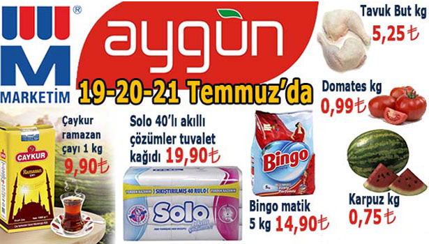 Aygün Market 19- 20- 21 Temmuz tarihleri arasında indirimli ürünleriyle Ereğli halkını alışverişe davet ediyor.