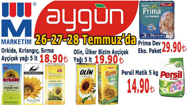 Aygün Market 26- 27- 28 Temmuz tarihleri arasında indirimli ürünleriyle Ereğli halkını alışverişe davet ediyor.