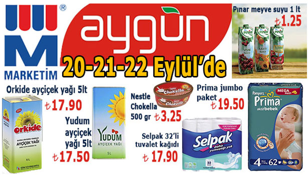 Aygün Market 20- 21- 22 Eylül tarihleri arasında indirimli ürünleriyle Ereğli halkını alışverişe davet ediyor.