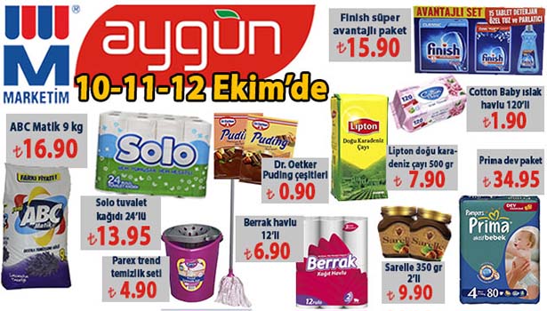 Aygün Markette 10-11-12 Ekim tarihlerinde indirimler yapılacak. Aygün Market indirimlerini kaçırmayın.