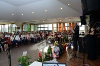 Emekli müzik öğretmenleri Gülay-Suat Aykan çiftinin yılsonu konserine İzmir Marşı damgasını vurdu.