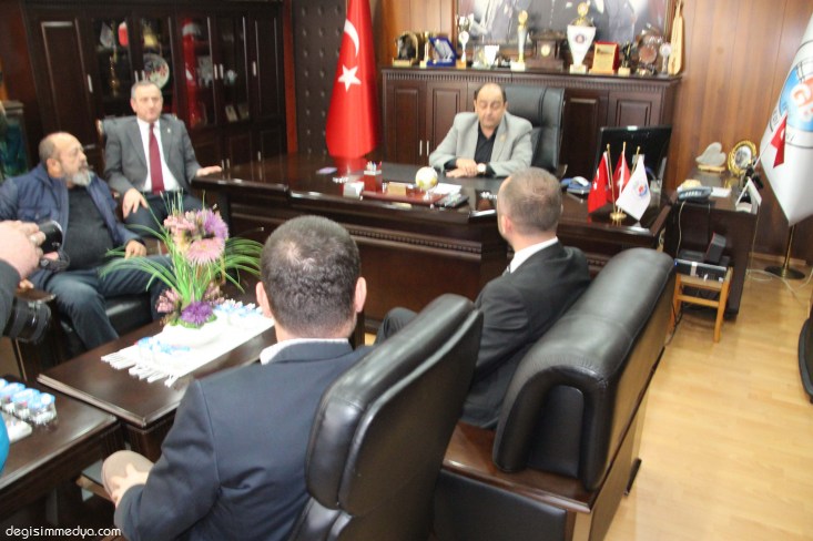 Gülüç Belediye Başkanı Gökhan Demirtaş, Kdz. Ereğli TSO'nun Nisan ayında yapılması planlanan organ seçimlerinde aday olan Aslan Keleş ve arkadaşlarını makamında ağırladı.