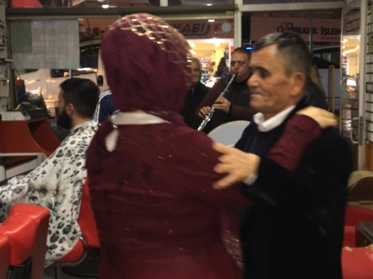 çift, yine davul zurna eşliğinde kuaför dükkânına girdi. İlk danslarını yapan
