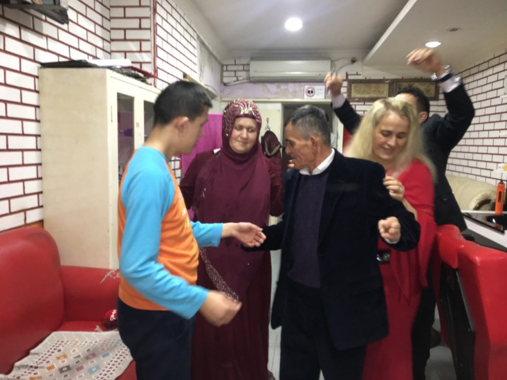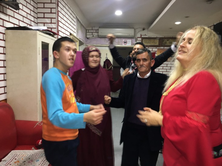 ortak arkadaşları Hasan Kamberoğlu'nun kuaför dükkânında düğün eğlencesi