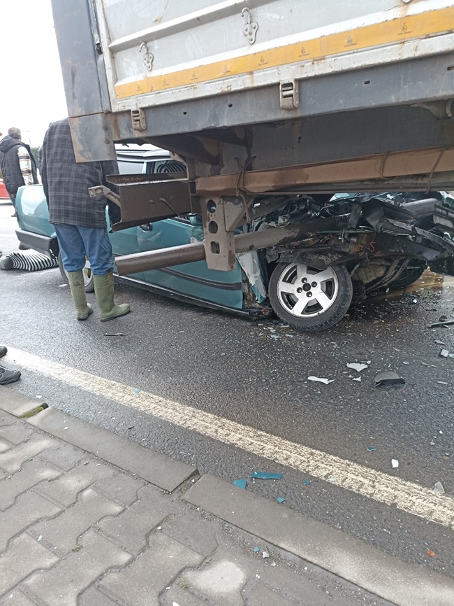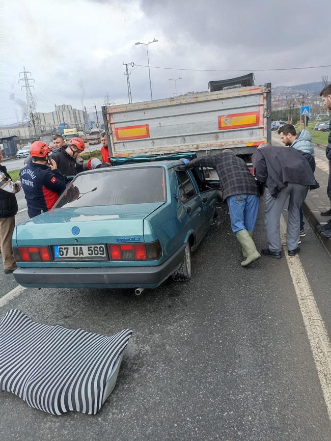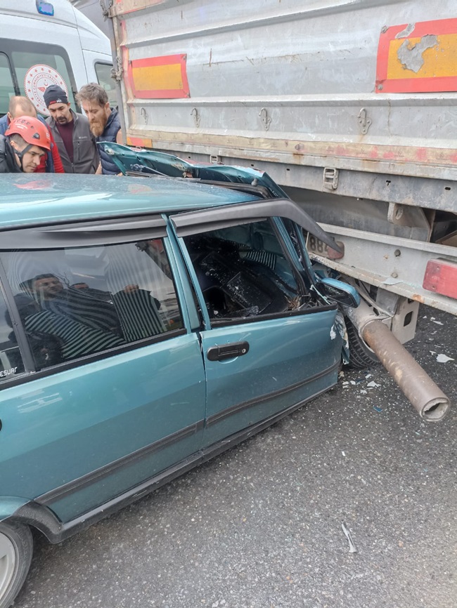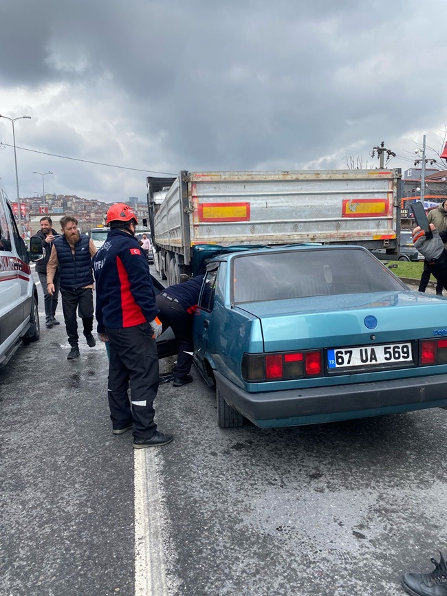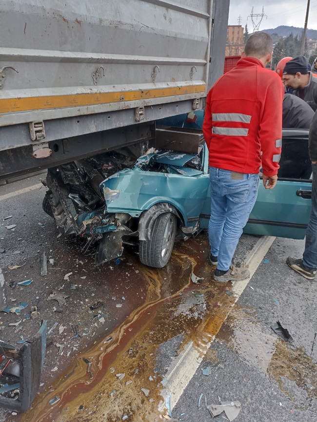 Karadeniz Ereğli ilçesinde meydana gelen kazada araç Tır’ın altına girdi. Araçta sıkışan sürücüyü itfaiye ekipleri zorlukla çıkardı.