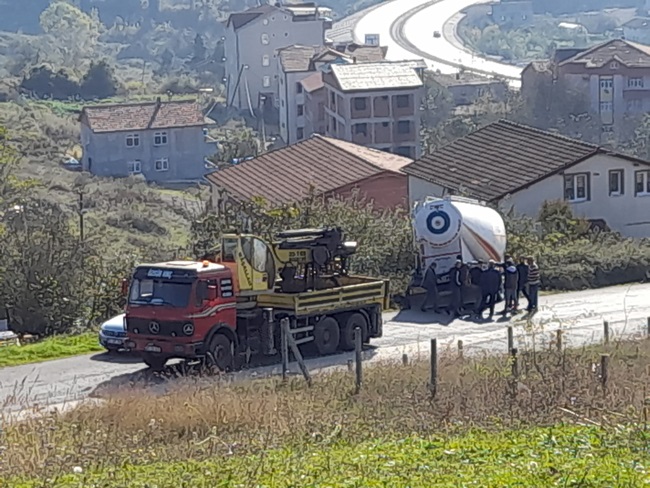 Zonguldak'ın Ereğli İlçesi'nde sürücüsünün direksiyon hakimiyetini kaybettiği Silobas kamyonu yol kenarındaki tarlaya girdi.