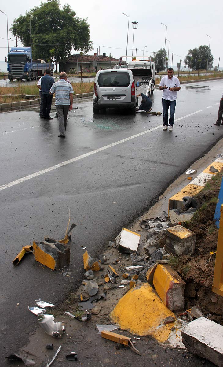 67 LN 328 plakalı hafif ticari kamyonet sürücüsü Okan Hasçelik, plajlar mevkiinde kavşaktan döndükten sonra yağmur nedeniyle yolda biriken mıcırlara aracı kaptırarak savrulmaya başladı. Direksiyon hâkimiyetini kaybeden sürücü, yolda savrulduktan sonra akaryakıt istasyonuna girmekten son anda kurtuldu. İstasyonun koruma duvarına çarpan araç, takla attı. Kazayı gören akaryakıt çalışanları ve diğer sürücüler araç içinde bulunan sürücü Okan Hasçelik (30), nişanlısı Utku Sevinç (25) ve Zehra Sevinç'in (45) yardımına koştu. Yaralılar olay yerine gelen ambulans ile Anadolu Hastanesi'ne kaldırıldı.
