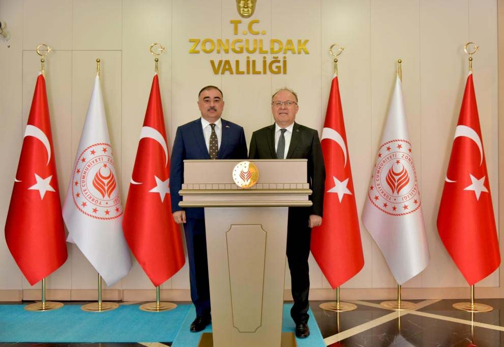 Azerbaycan Ankara Büyükelçisi Reşad Memmedov, Zonguldak Valisi Mustafa Tutulmaz'a nezaket ziyaretinde bulundu.