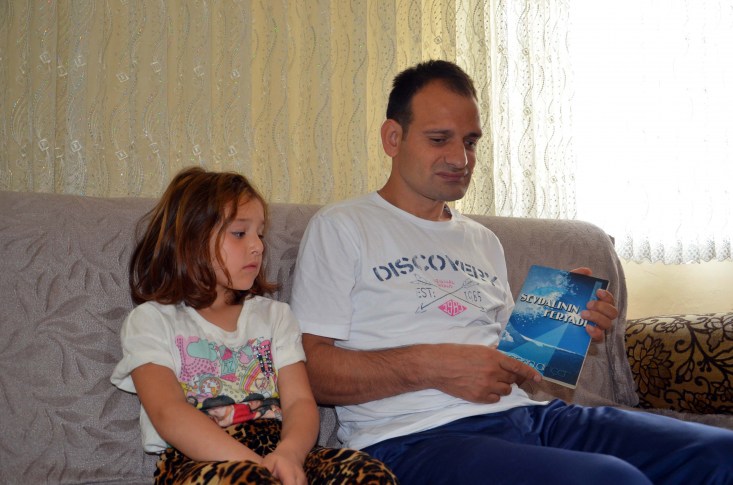 Görme Engelliler Okulu'ndan mezun olduktan sonra liseyi tamamlayan Cihan Dinçer, "Doğuştan görme engelliyim. Görme engelli olduğum anlaşıldığında Almanya'ya tedavi için gittim. Ama orada da çözüm bulunamadı. Geldiğimde sınavlara girip Görme Engelliler Okulu'nu kazandım. Oradan mezun oldum. Ardından Kilimli Lisesi'nden mezun oldum. Görme engelli olarak bir tek ben mezun oldum. Görme engelliliğim damar kuruması, tavuk karası diyorlar. Bunun için de hiçbir tedavi yok şu anlık yok en azından. Günlerim çocuklarımla ilgilenmekle geçiyor. Hayatımın her anında eşim yanımda. Kızım okula gidiyor. Bana en çok kızım yardımcı oluyor. Günlerim çocuklarıma yardım etmekle geçiyor. Çocuklarım benim elim ayağım oldu. Her konuda bana yardımcı oluyorlar. Çocuklarımı bana verdiği için Allah'a şükürler ediyorum" diye ifade etti.