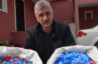 Zonguldak'ta 83 yaşında vefat eden babasının topladığı 10 binin üzerindeki mavi kapağı vasiyeti üzerine Kızılay görevlilerine teslim eden Göbü Köyü Muhtarı Musa Güçlücan(58), gözyaşlarına boğuldu.