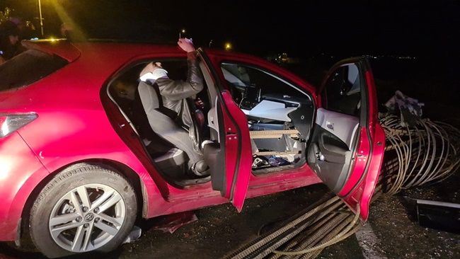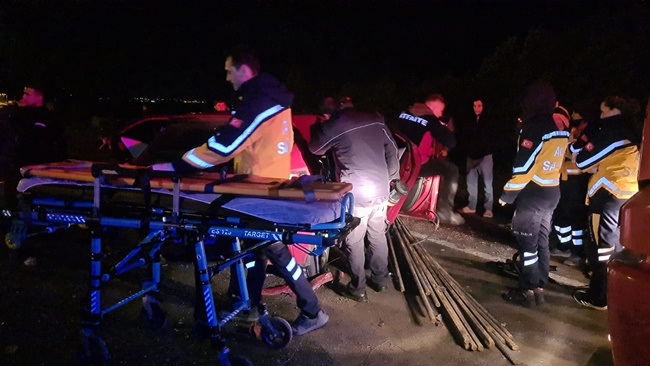 Zonguldak’ın Alaplı ilçesinde kapalı yolu fark etmeyen sürücü M.T., yol inşaatı için istiflenen demir yığınına çarptı. Demir yığını otomobile saplanınca, sürücünün yanındaki arkadaşı Gökberk Y. yaralandı.